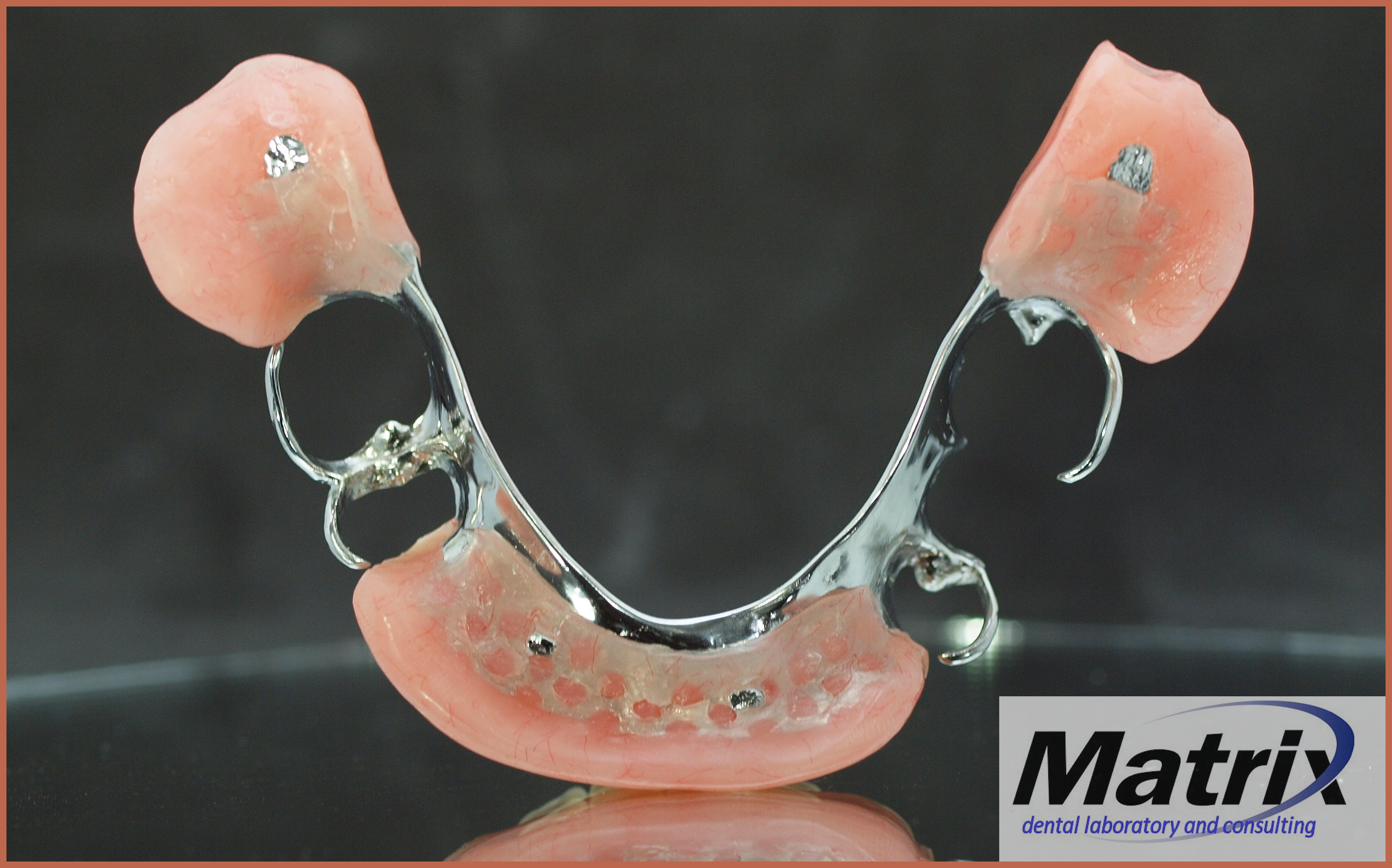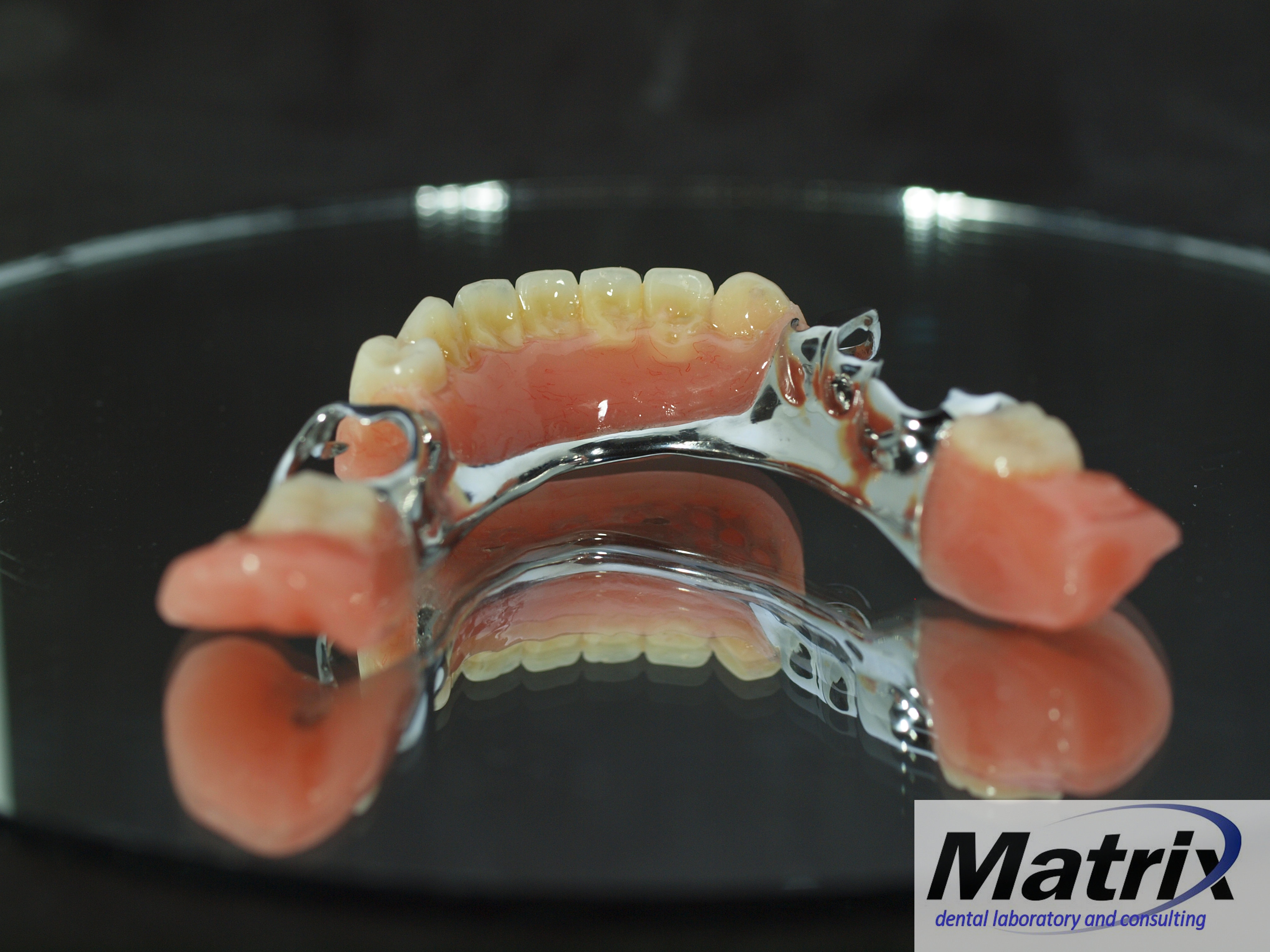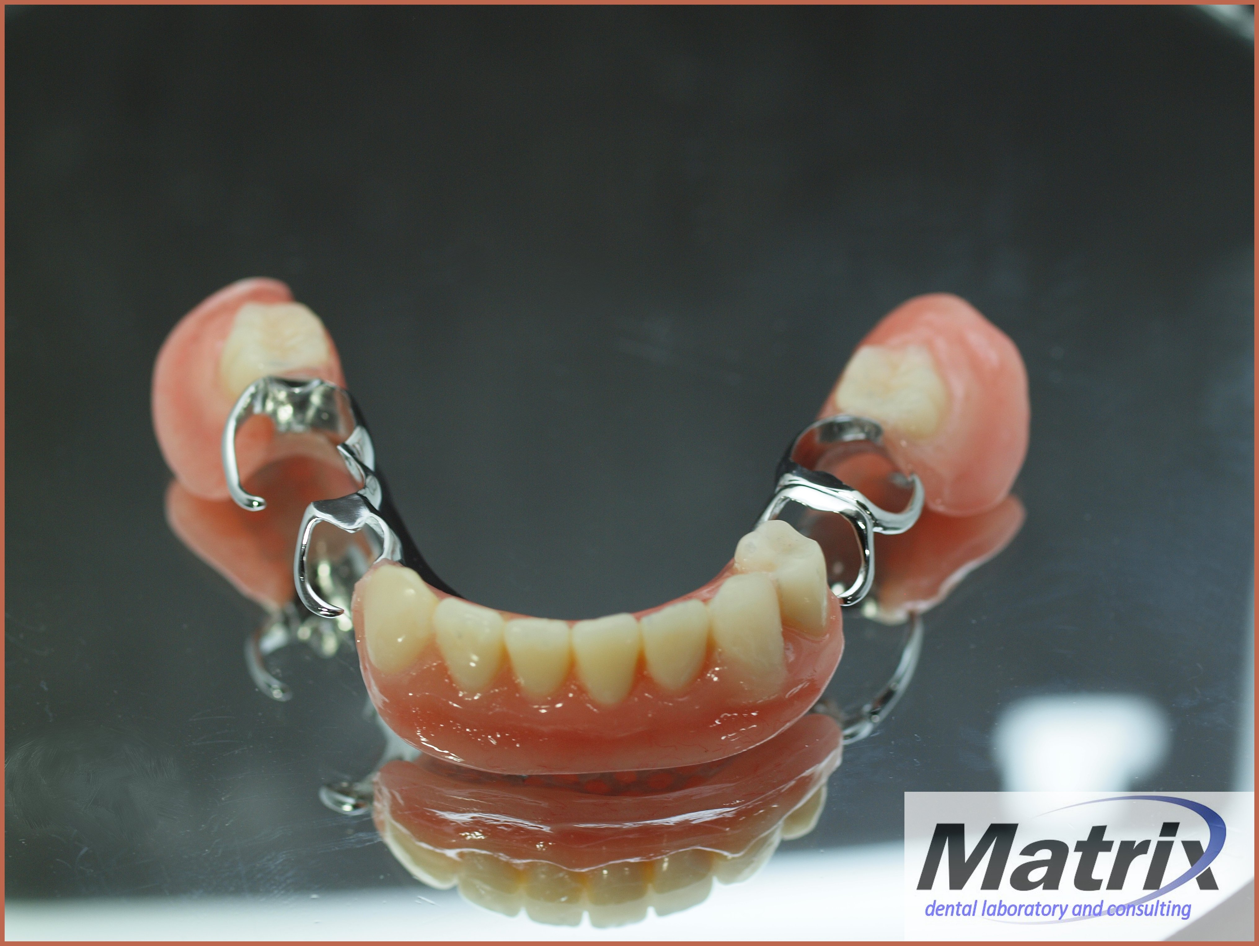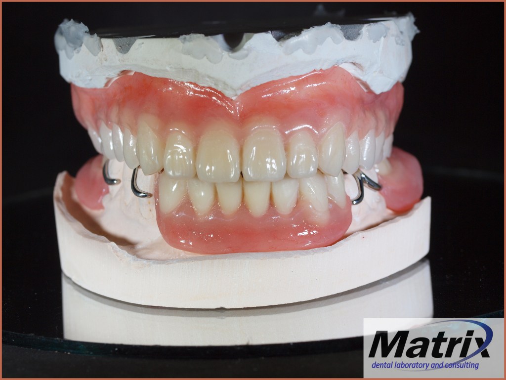 Full contour waxing.Final denture in long cycle heat cure PMMA (acrylic), using tried and true techniques established over a 35-year career in dental technology. Many patients are directed away from choosing chrome partial frameworks as the clinical and laboratory entities in the 21st century have begun shunning this type of treatment offering because it entails clinical skills involving tooth modifications such as occlusal rest seats, guide planes and the laboratory understanding of design and fabrication. This is partly due to the lack emphasis in dental schools and the lack of formal education programs in laboratory technology. Polish and finishTissue stops and high polish finish.