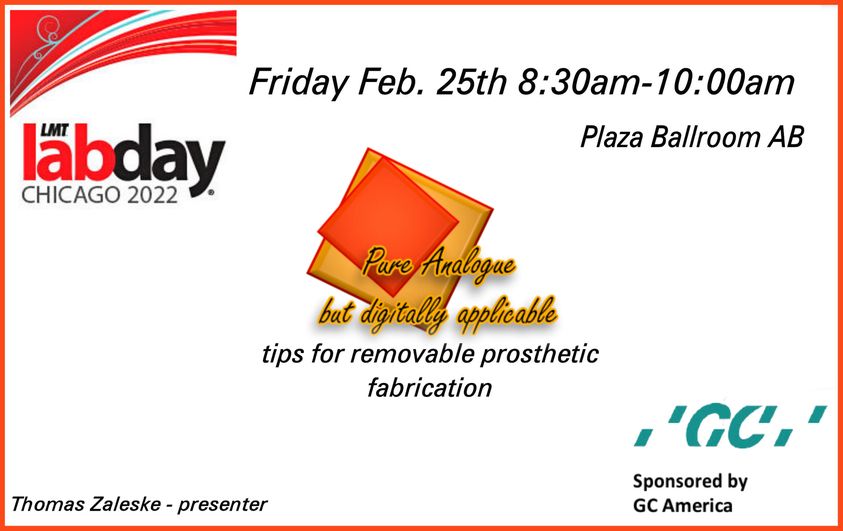 We will talk a bit about marketing, fabrication, and approaches to situations I have found to be helpful in establishing and maintaining a profitable, quality orientated, removable dental laboratory without compromising my analogue skill sets which I have honed over the years.