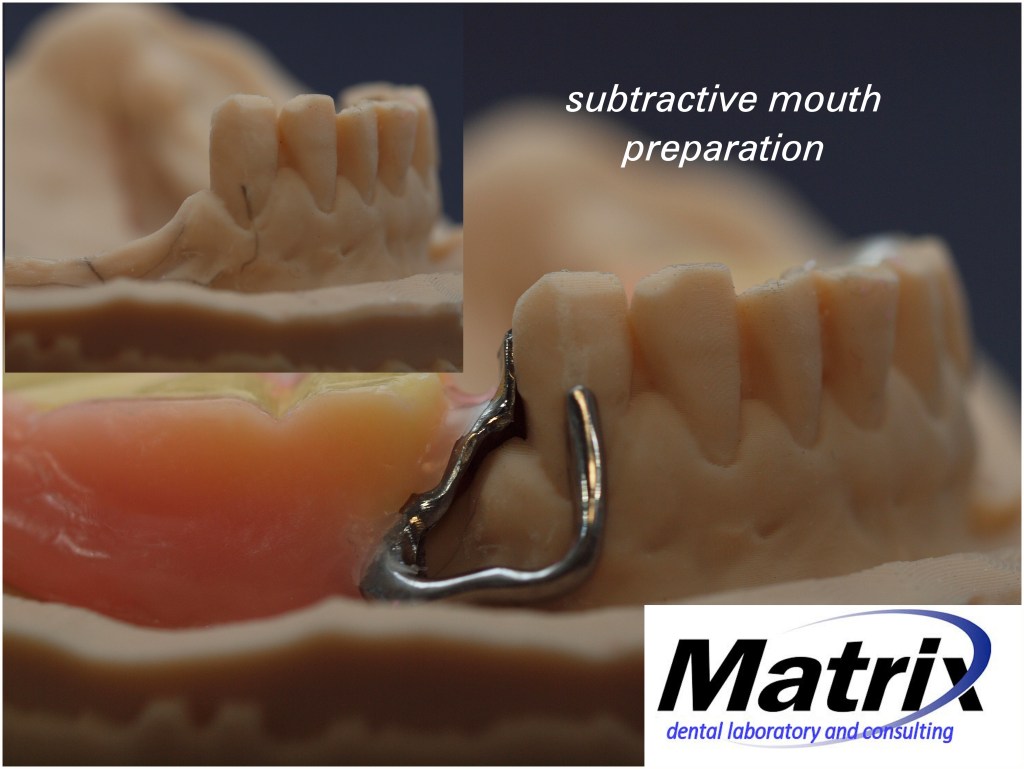 A lost art in clinical dentistry. Guide planes are incorporated into the terminal abutment teeth on a bilateral free end treatment with a partial denture. Guide planes increase both the stability of the denture and resistance to lateral movement. Guide planes also protect the abutments from displacement during insertion and removal of the denture. As a lab, I offer preconstructed jigs which aid in the parallelism of the planes aiding the dentist in the pitfalls of free hand preparation.