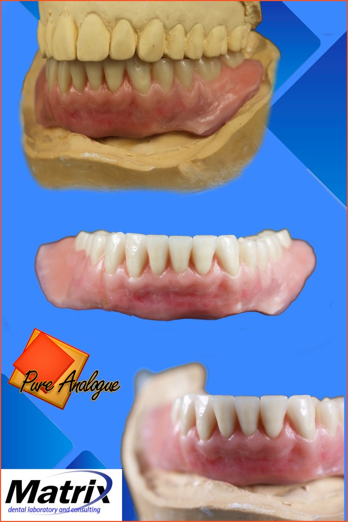This diagnostic wax try-in helps discern space requirements for a hybrid bar.