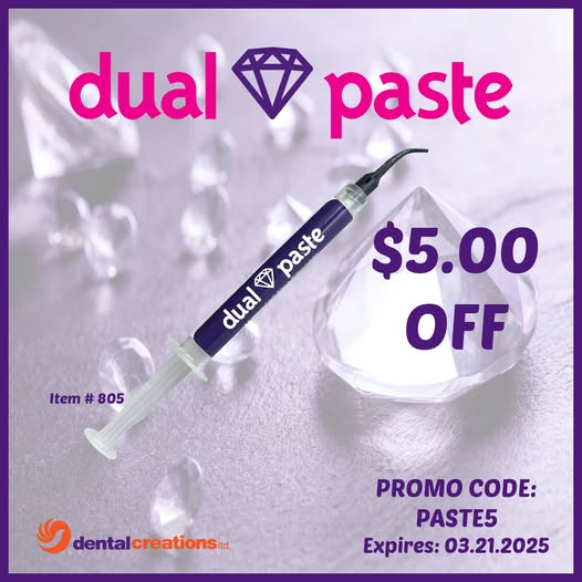 March 7, 2025 An exceptional final polishing paste for a variety of removable prosthetic materials. https://dentalcreationsltd.com/product/dual-diamond-polish/ Share this: Click to share on X (Opens in new window) X Click to share on Facebook (Opens in new window) Facebook Like Loading... Related